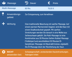 • Seifen-Rubbel-Massage Seifen-Rubbel-Massage 45,00 €