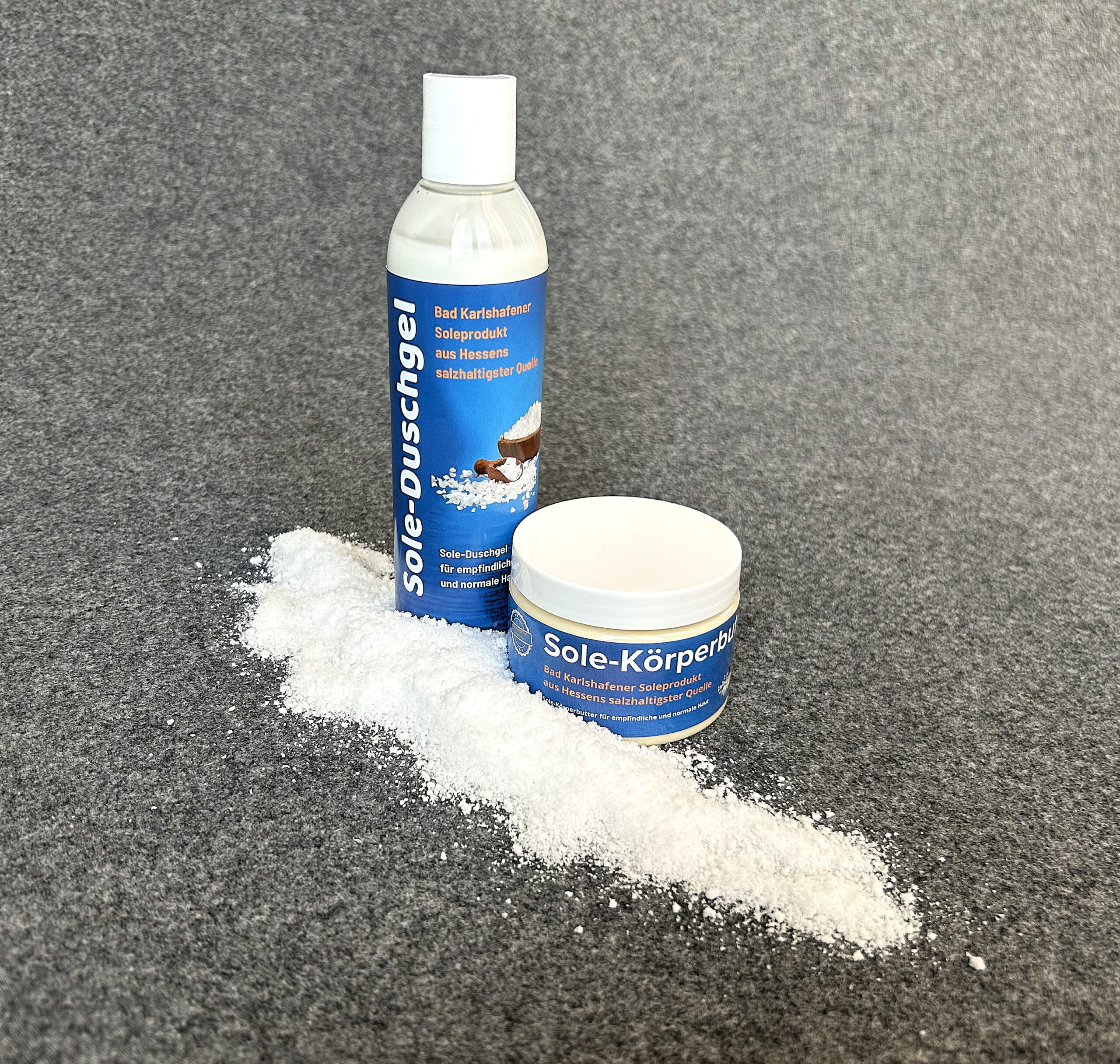 Sole-Duschgel und Sole-Körperbutter sind besonders gut geeignet für die empfindliche und normale Haut. Die Pflegeserie enthält original Bad Karlshafener Sole und wird in einer kleinen Seifenmanufaktur in der Region hergestellt.