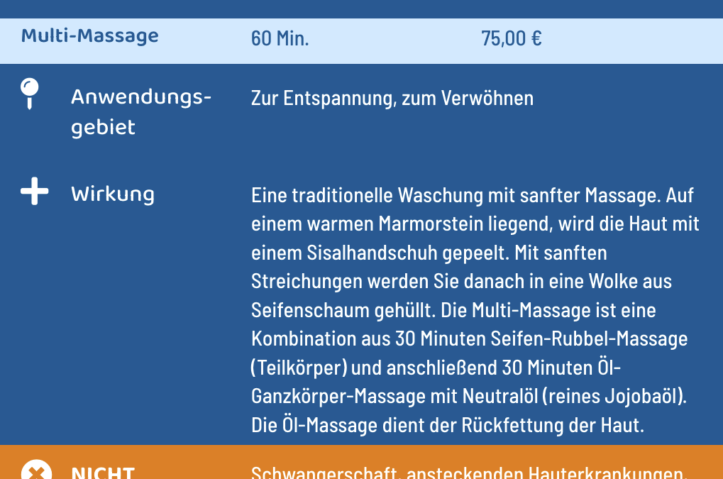 • Massagen im Wellnessbereich